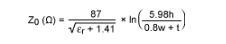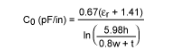 式中,εr为电介质的介电常数,h为引线距离地层的高度,w为引线宽度,t为引线厚度(图7)。w/h介于0.1至2.0、εr介于1至15之间时,该公式的计算结果相当准确7。