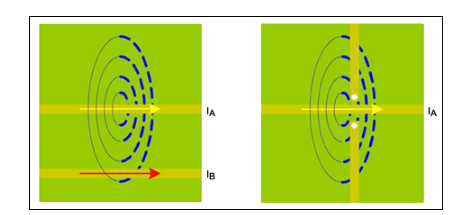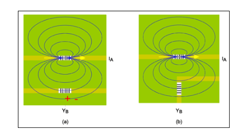 式中,YB是向电路B注入的误差电压,IA是在电路A作用的电流1。LM对电路间距、电感环路面积(即磁通量)以及环路方向非常敏感。因此,紧凑的电路布局和降低耦合之间的最佳平衡是正确排列所有电感的方向。