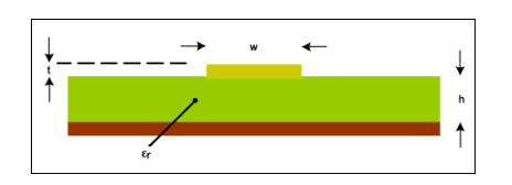 图7. 该图为PCB横截面(与图5类似),表示用于计算微带线阻抗的结构。